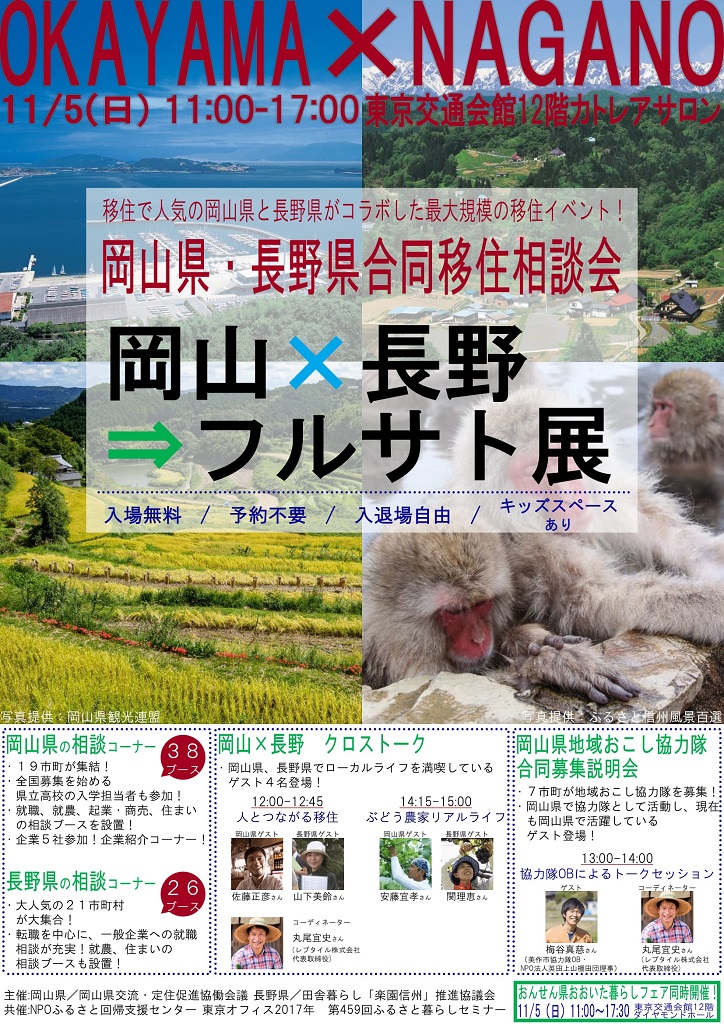 11 5 岡山県 長野県合同移住相談会 岡山 長野 フルサト展に出展します ニッポン移住 交流ナビ Join